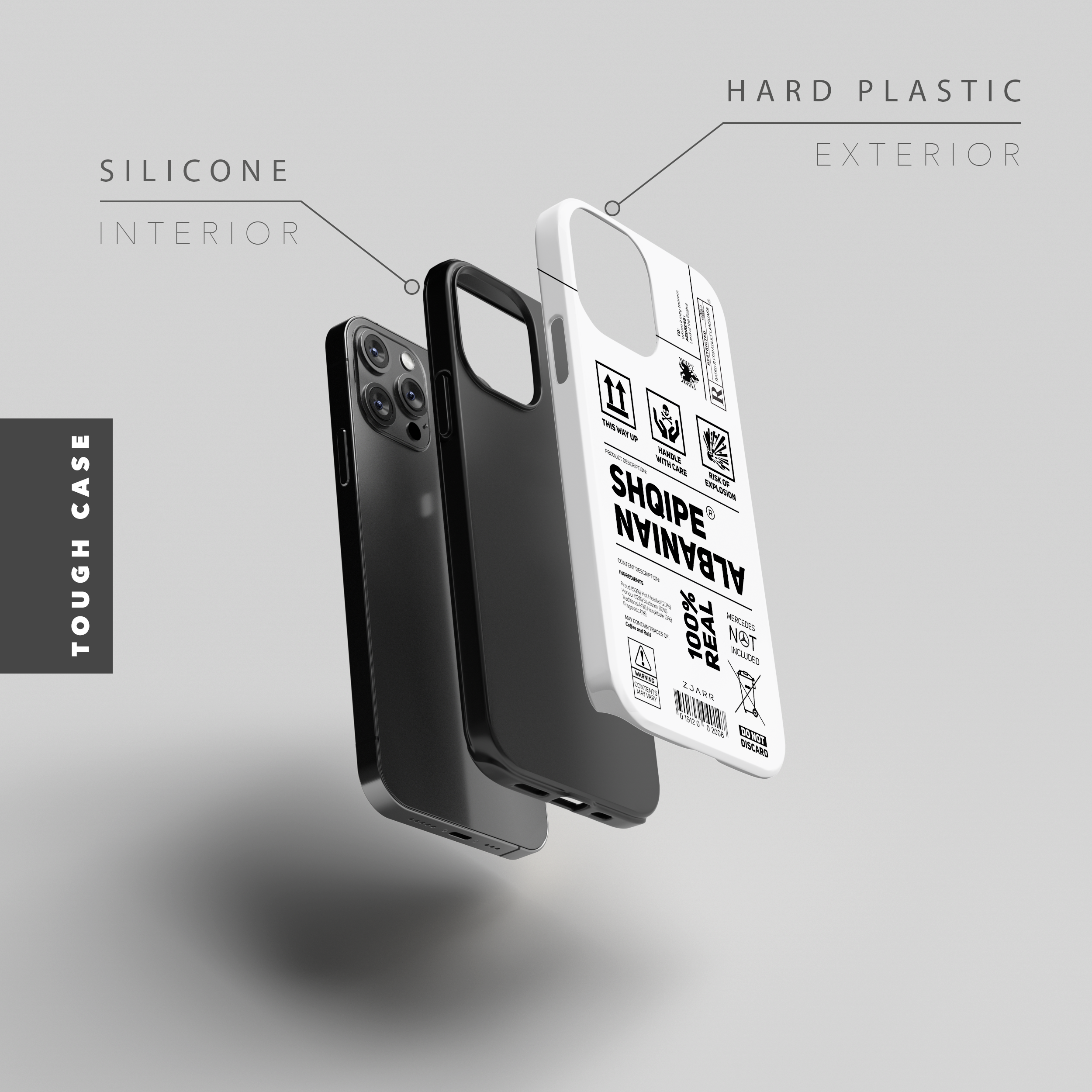 Our tough phone cases feature a double-layer design: a shock-absorbent black silicone interior and a durable hard plastic shell exterior for maximum protection