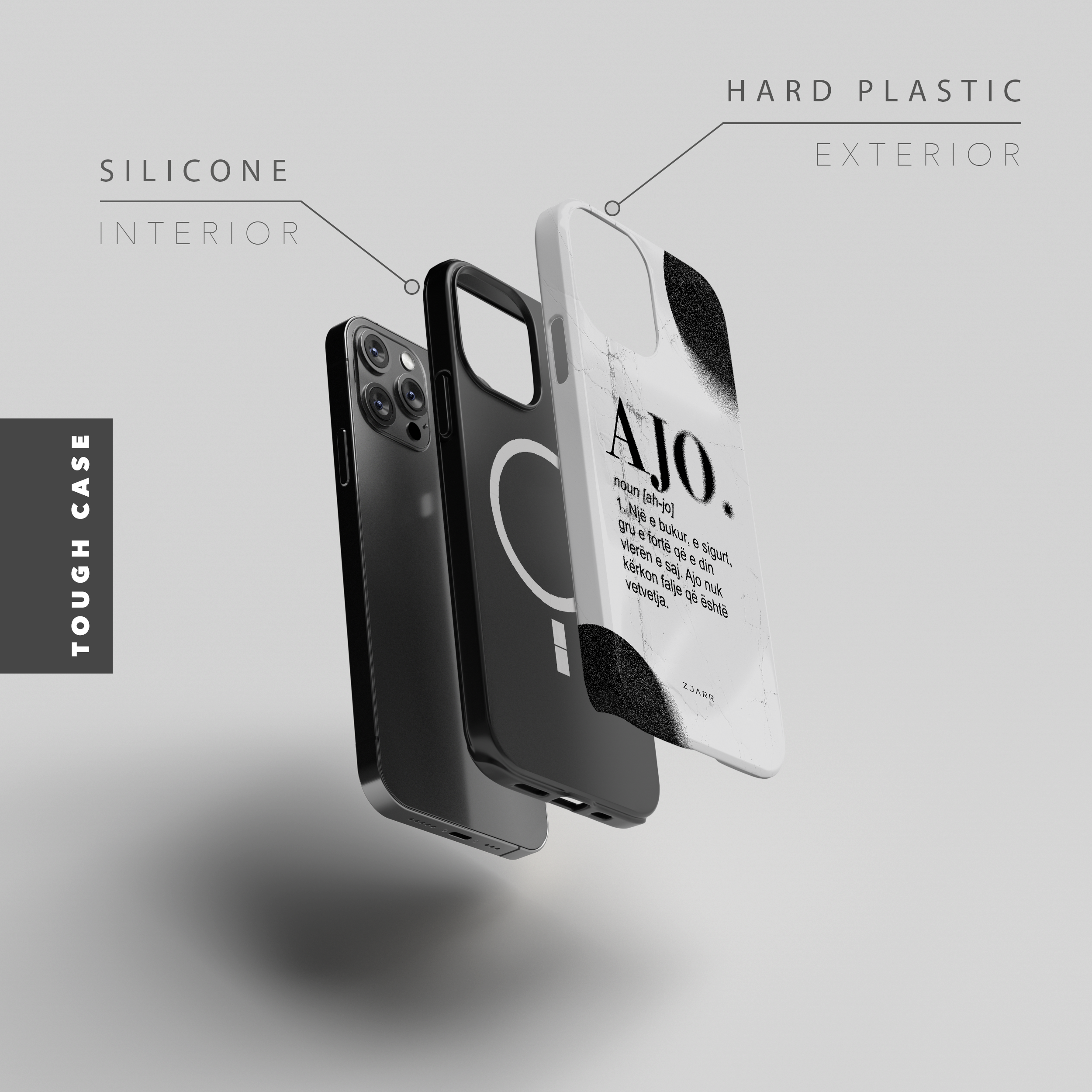 Our tough phone cases feature a double-layer design: a shock-absorbent black silicone interior and a durable hard plastic shell exterior for maximum protection